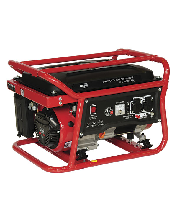 четырехтактный бензиновый двигатель мощностью 6,5 л.с., автоматическая регулировка выходного напряжения, индикатор низкого уровня масла, металлический топливный бак объемом 15 литров, две розетки 220В, многоразовый воздушный фильтр.