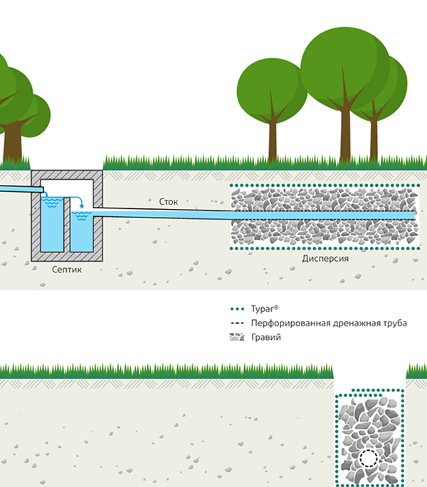 - В отличие от иглопробивных фильтров, не снижает пропускную способность дренажа благодаря своей жесткости