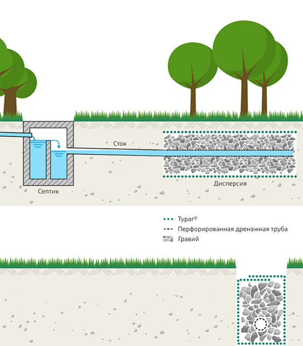 - В отличие от иглопробивных фильтров, не снижает пропускную способность дренажа благодаря своей жесткости.