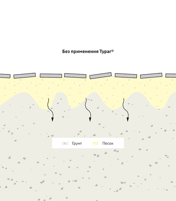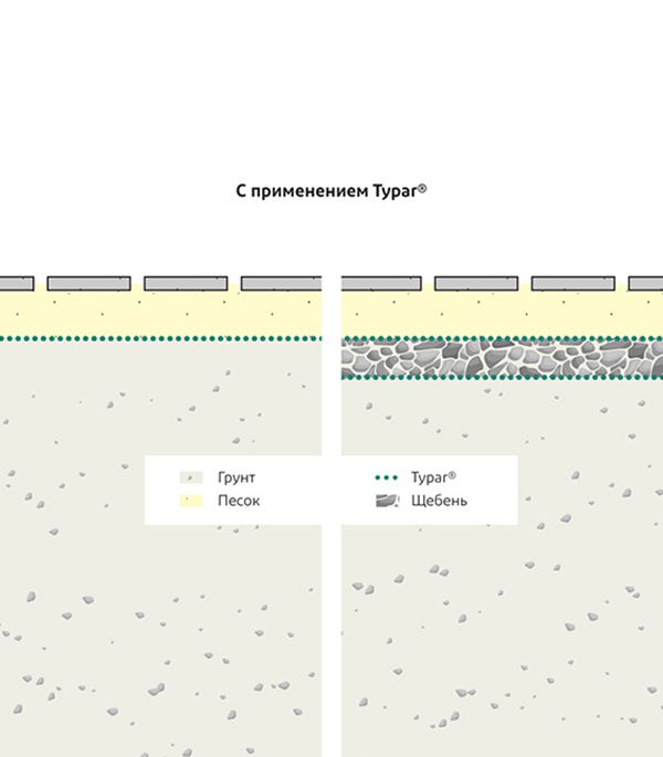 - Разделяет и стабилизирует слои основания. Предотвращает просадку и эрозию песка в грунт.