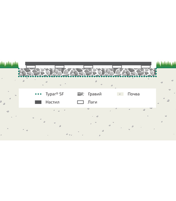 - Высокая водопроницаемость Typar®, протестированная в соответствии с EN13562, обеспечивает оптимальный отвод воды. Иглопробивные материалы значительно снижают водопроницаемость в грунте под давлением.
