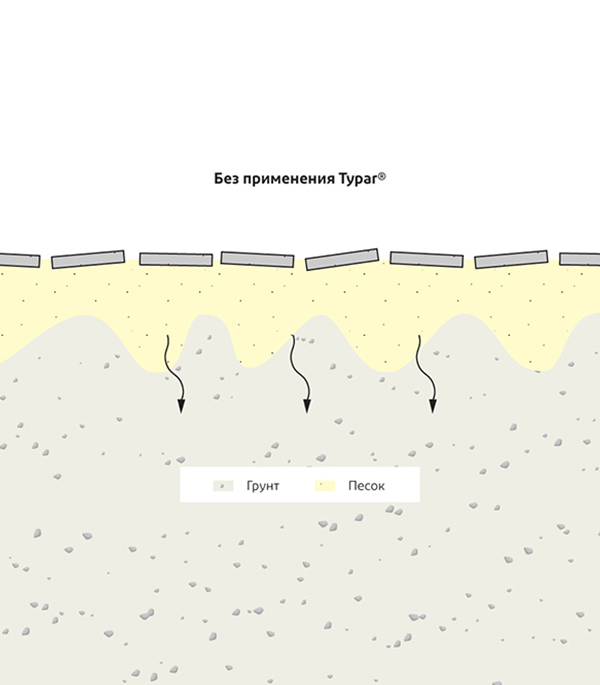 - Typar® минимизирует просадки гравия или песка в грунт.