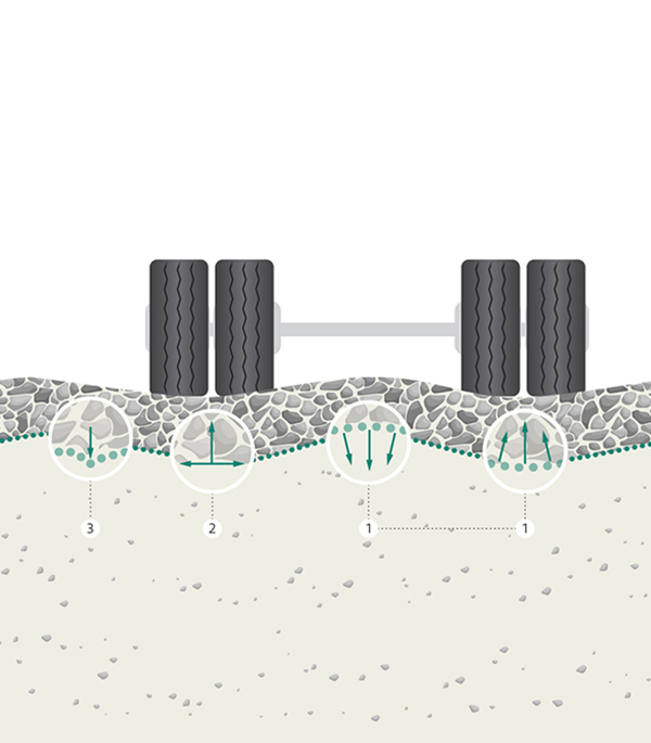 - Стабилизирует основание дороги и распределяет нагрузку.
