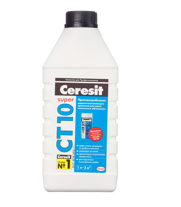 Противогрибковая водоотталкивающая пропитка .rnПредназначена для придания водоотталкивающих свойств заполненным затирками швам плиточных облицовок, каменным и неглазурованным керамическим облицовкам и т.д. Применяется для защиты швов плиточных облицовок, подверженных периодическому или постоянному увлажнению (в ванных, душевых, туалетах, кухнях, на балконах, террасах и т.д.).rnФунгицидные (противогрибковые) свойства пропитки CT 10 обеспечивают длительную защиту от грибка и плесени. CT 10 может быть применена на поверхностях, имеющих трещины раскрытием до 0,2 мм.rnДля внутренних и наружных работ.