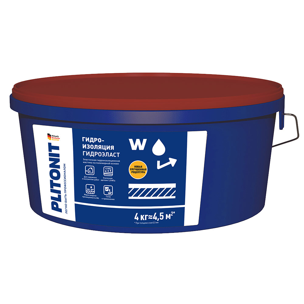 - Мастика не предназначена для гидроизоляции спортивных бассейнов, колодцев, подвалов, резервуаров с водой, других объектов, подвергающихся воздействию повышенного давления воды. Для этих целей рекомендуется использовать гидроизоляцию ПЛИТОНИТ ГидроЭласт 2К.