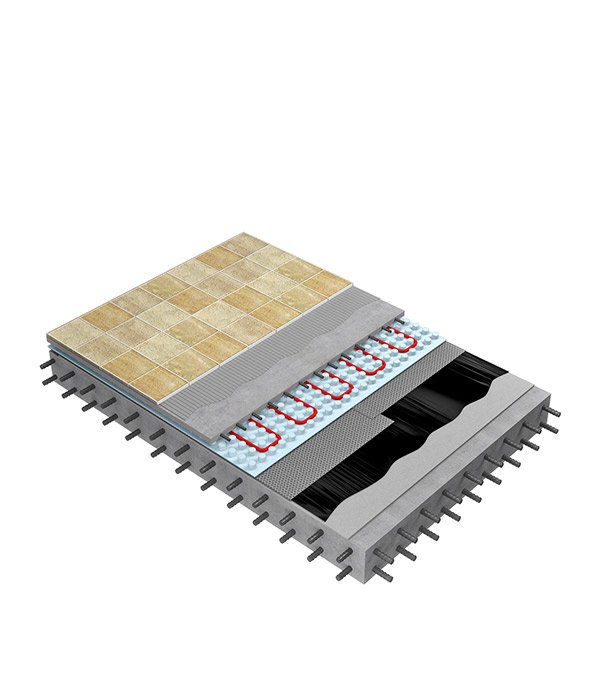 защищает гидроизоляционный слой от механических повреждений. Обеспечивает высокую адгезию с плиточным клеем.