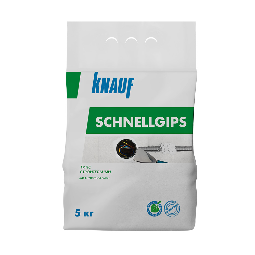 Гипс строительный применяется для изготовления гипсовых строительных изделий и при ремонтных работах. Быстротвердеющий, прочный, идеально подходит для фиксации электрических розеток, крепления электропроводки, штукатурных маячков. Обладает высокой заполняющей способностью, сохраняет заданную форму, безусадочный, после затвердевания абсолютно совместим со штукатуркой КНАУФ-Ротбанд.rnНачало схватывания – не менее 2 минутrnКонец схватывания – не позднее 30 минут