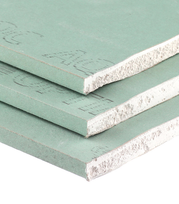 Предназначен для устройства легких межкомнатных перегородок, подвесных потолков, облицовки стен, а также в зданиях и помещениях с влажным и мокрым влажностными режимами с обеспечением вытяжной вентиляцией и при условии защиты лицевой поверхности, например: гидроизоляцией, водостойкими грунтовками, красками, керамической плиткой и т.п.rnСостоит из гипсового сердечника, оклеенного с двух сторон картоном. Боковые (продольные) кромки листа также оклеены картоном и имеют утоненную форму. В картоне содержатся вещества, препятствующие появлению грибка. Гипсовый сердечник содержит специальные добавки, снижающие поглощение влаги. rnСогласно ГОСТ 6266-97 листы гипсокартона могут иметь допуски по ширине и длине до 5 мм в меньшую сторону.