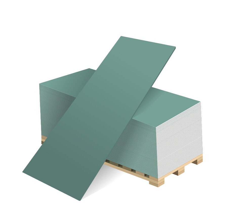 Предназначен для устройства легких межкомнатных перегородок, подвесных потолков, облицовки стен, а также в зданиях и помещениях с влажным и мокрым влажностными режимами с обеспечением вытяжной вентиляцией и при условии защиты лицевой поверхности, например: гидроизоляцией, водостойкими грунтовками, красками, керамической плиткой и т.п.rnСостоит из гипсового сердечника, оклеенного с двух сторон картоном. Боковые (продольные) кромки листа также оклеены картоном и имеют утоненную форму. В картоне содержатся вещества, препятствующие появлению грибка. Гипсовый сердечник содержит специальные добавки, снижающие поглощение влаги. rnСогласно ГОСТ 32614 – 2012 листы гипсокартона имеют допуск по ширине до 4 мм в большую сторону, допуск по длине до 5 мм в меньшую сторону.