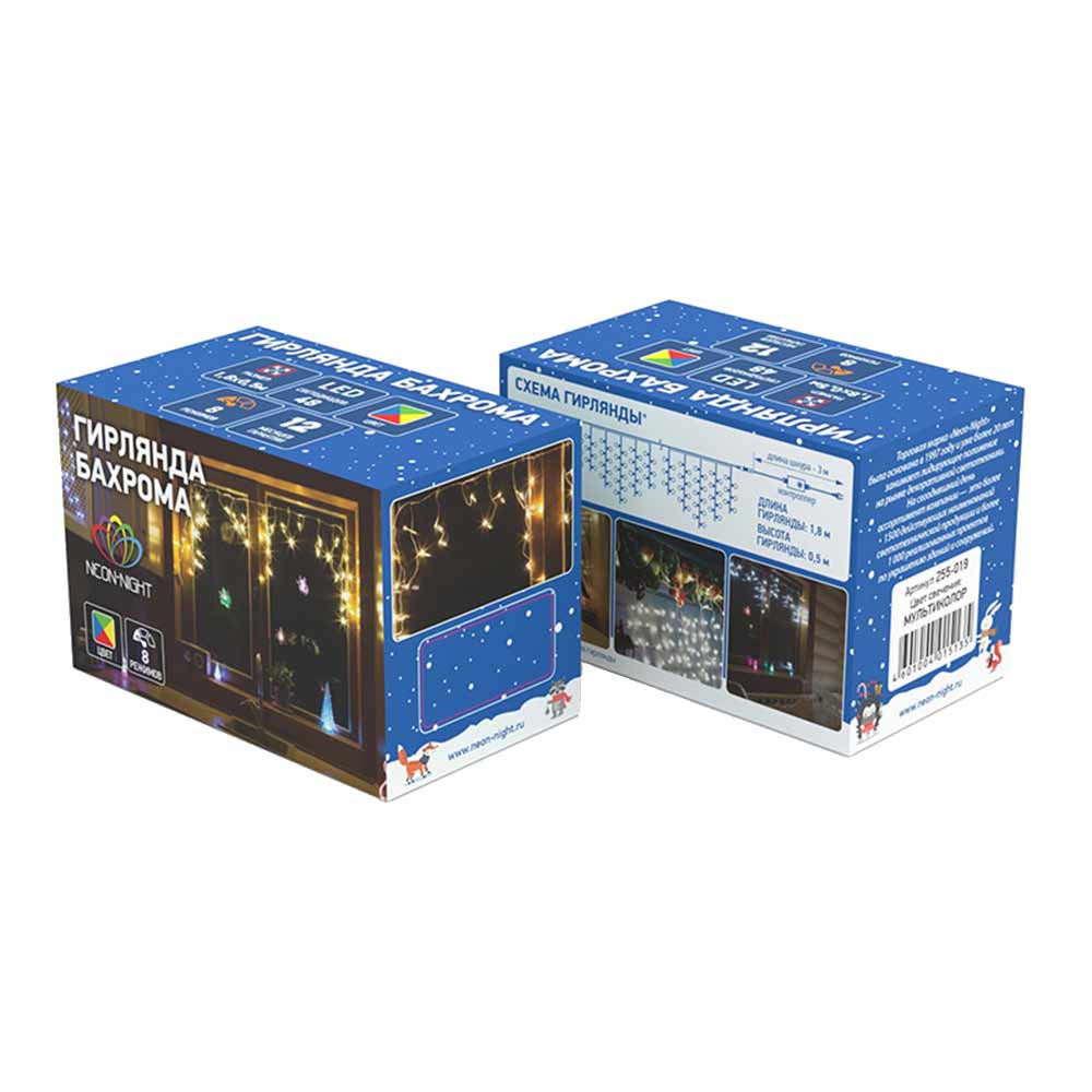 Гирлянда светодиодная Neon-Night Айсикл (бахрома) 48 LED свечение RGB 1,8х0,5 м (255-009)