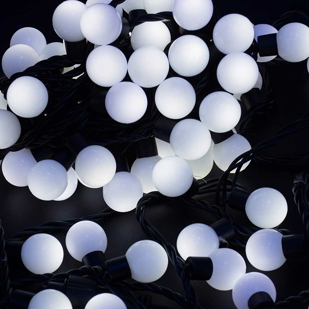 Предназначена для украшения витрин магазинов, помещений, больших интерьерных и уличных елок, превращая их в настоящие произведения искусства. Благодаря хорошей влагозащищенности, гирлянду можно использовать как в помещении, так и на улице. Гирлянда LED – шарикипредставляет собой электрический шнур, имеющий длину 10 или 2x4,5см. rnДанная гирлянда имеет длину 10 м, на которой равномерно расположены 80 шариков диаметром 2x3 мм с Белым цветом свечения.rnРаботает от сети 220 В