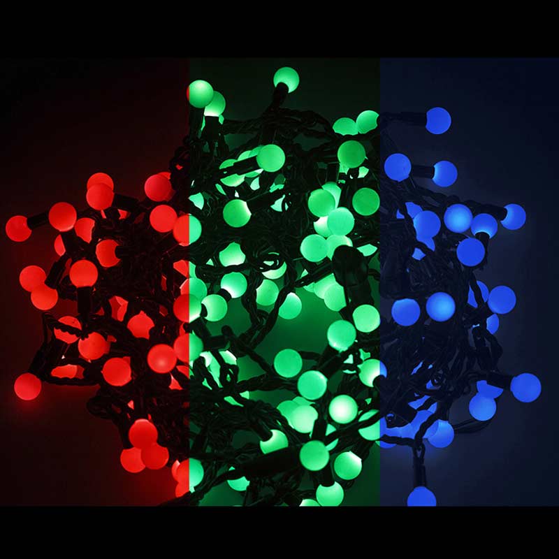 Предназначена для украшения витрин магазинов, помещений, больших интерьерных и уличных елок, превращая их в настоящие произведения искусства. Благодаря хорошей влагозащищенности, гирлянду можно использовать как в помещении, так и на улице. Гирлянда LED – шарикипредставляет собой электрический шнур, имеющий длину 10 или 2x4,5см. Светодиоды по сравнению с миниатюрными лампами накаливания имеют целый ряд существенных преимуществ. Их отличает чистое и яркое свечение, огромный ресурс, прочность, незначительное потребление энергии, надежность. Гирлянда LED – шарикиобладает эффектом смены цветов. Такая гирлянда позволяет получить неповторимые светодинамические картины, коренным образом отличающиеся от существующих сегодня типов световых эффектов.rnДанная гирлянда имеет длину 10м. на которой равномерно расположены 80 шариков диаметром 2x3 мм с цветом свечения RGB.rnРаботает от сети 220 В