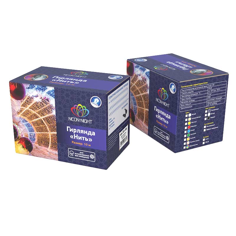 Предназначена для украшения как уличных, так и домашних елей, для оформления различных витрин, окон, колонн, элементов интерьера и разнообразных композиций, является наиболее универсальной гирляндой. Часто «Нити» используются под различные проекты по украшению объектов различной значимости, благодаря тому, что может соединяться до 50 метров при подключении на один блок питания 531-100 (в комплект не входит). Гирлянда «Нить» представляет собой общий провод с последовательно расположенными коротенькими отводами, направленными в разные стороны. На концах этих «отростков» расположены яркие светодиоды. Общая длина гирлянды составляет 10 метров.rnДанная гирлянда имеет прозрачный ПВХ и Желтый цвет свечения светодиодов. Гирлянда предназначена для использования как внутри помещения, так и снаружи, шнур питания/трансформатор в комплект не входит.rnРаботает от сети 220 В (требуется шнур питания арт 303-500/303-500-1)