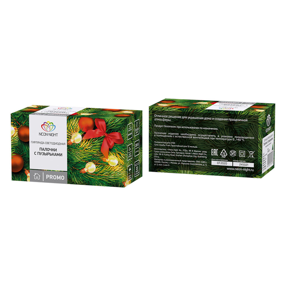 Гирлянда светодиодная Neon-Night Палочки с пузырьками 20 LED свечение Мультиколор 2 м (303-037)