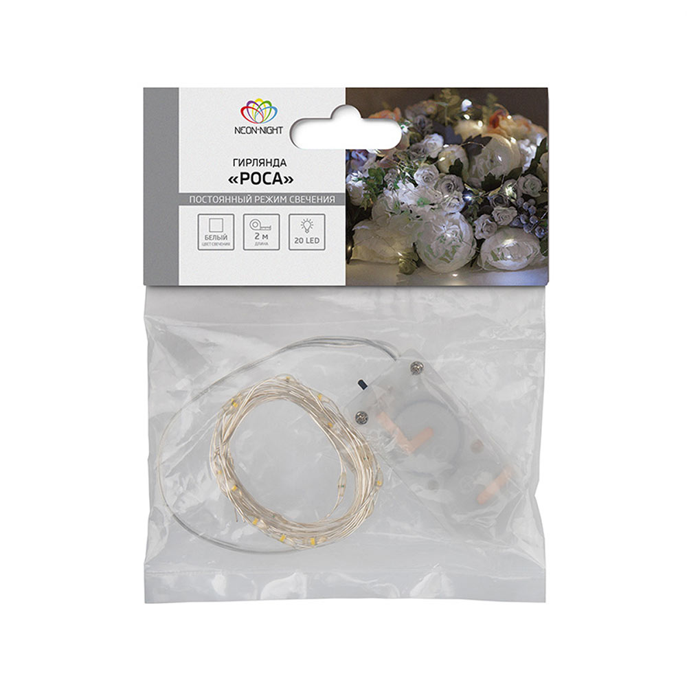 Гирлянда светодиодная Neon-Night Роса 20 LED свечение Белый 2 м с батарейным блоком (303-005)