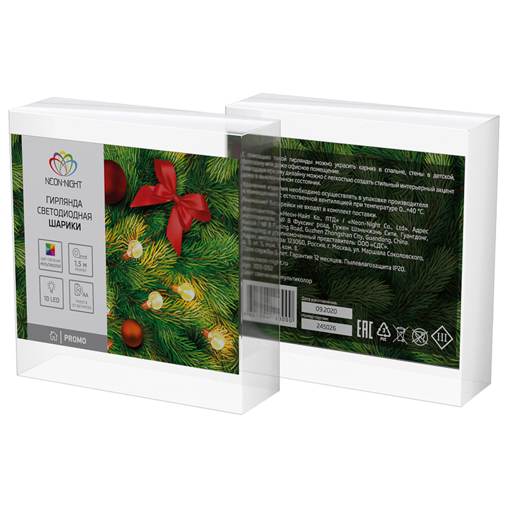Гирлянда светодиодная Neon-Night Шарики 10 LED свечение мультиколор 1,5 м (303-092)