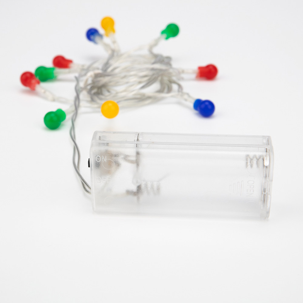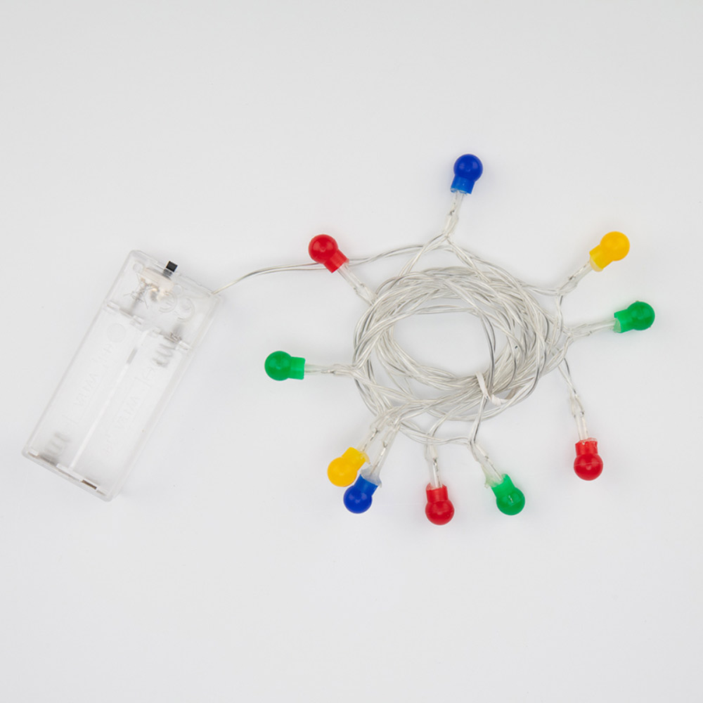 Светодиодная гирлянда «Шарики» – прекрасное решение для создания праздничной атмосферы и уюта в любом интерьере.rnС помощью гирлянды можно украсить карниз в спальне, стены в детской, фотозону или даже офисное помещение. rnБлагодаря яркому дизайну можно с легкостью создать стильный интерьерный акцент даже в выключенном состоянии.rnВсего на гирлянде 10 разноцветных шариков, на расстоянии 16,67 см. Работает от 2 батареек АА (в комплекте не идут).