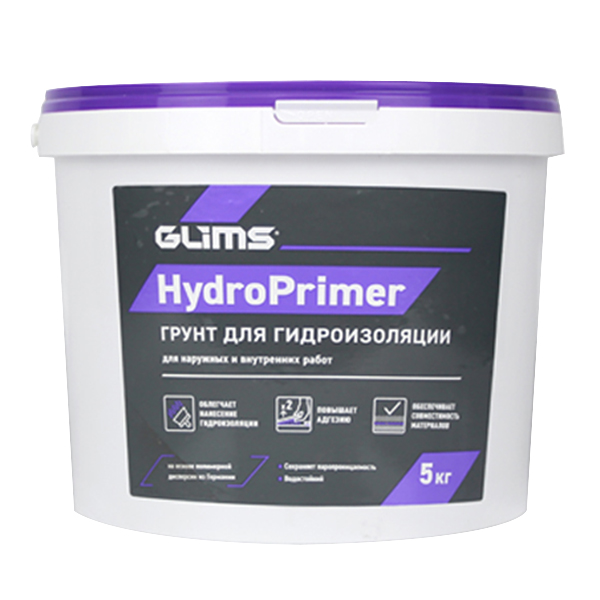 Для ремонта помещений с высоким уровнем влажности, в первую очередь необходима перед нанесением гидроизоляционных составов. Грунтовка для гидроизоляции GLIMS®HydroPrimer подготавливает основание для укладки гидроизоляционных материалов, укрепляя и обеспыливая его.