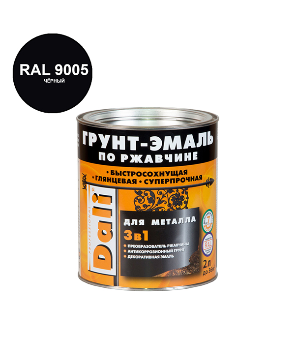 Грунт-эмаль по ржавчине Dali гладкая черная RAL 9005 3в1 глянцевая 2 л