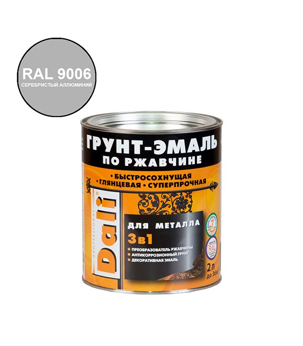 Грунт-эмаль по ржавчине Dali гладкая серебристый алюминий RAL 9006 3в1 глянцевая 2 л