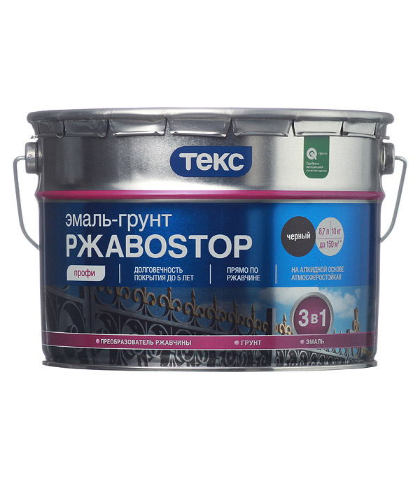 Грунт-эмаль по ржавчине Текс РжавоStop черная 3в1 глянцевая 10 кг
