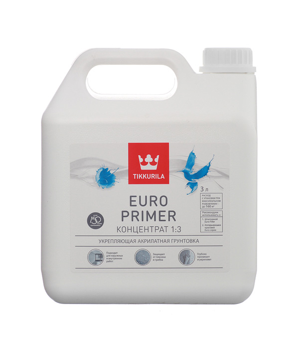 Концентрат водоразбавляемой укрепляющей акриловой грунтовки глубокого проникновения. Подходит для использования в сухих и влажных помещениях, в том числе и в ванных комнатах. Содержит добавки против грибков и плесени. rnПредназначен для предварительной подготовки оштукатуренных, кирпичных, бетонных, гипсокартонных и газобетонных поверхностей, гипсовых строительных материалов, волокнисто-цементных панелей, древесно-стружечных и древесно-волокнистых плит, а также легкомелящихся старых покрытий. Грунтовка хорошо пропитывает поверхность, обеспечивает профилактику роста грибков и плесени. Не применять по слабодержащимся покрытиям и штукатуркам.rnДля внутренних и наружных работ.