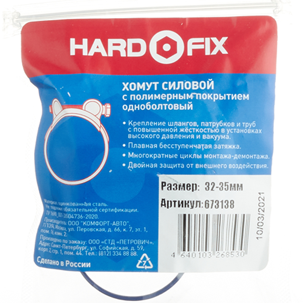 Хомут силовой Hard-Fix 32-35 мм оцинкованная сталь с полимерным покрытием одноболтовый