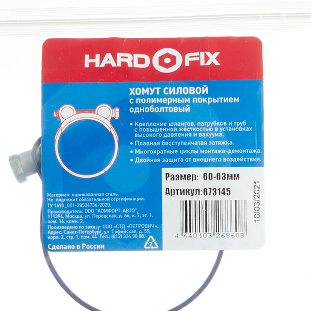 Хомут силовой Hard-Fix 60-63 мм оцинкованная сталь с полимерным покрытием одноболтовый