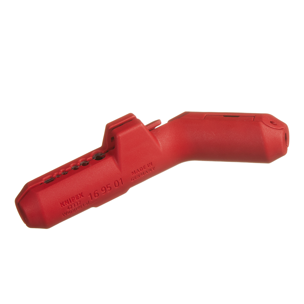 Предназначен для быстрого и точного удаления оболочки и изоляции с наиболее часто применяемых круглых проводов и проводов для сырых помещений (например, NYM от 3 x 1,5 мм² до 5 x 2,5 мм²), дата-кабеля (например, витая пара) и коаксиального кабеля.rnЭргономичный дизайн ручки пистолетной формы для лёгкого реза и снятия изоляции. Конусообразный край инструмента оптимален для лучшего доступа к проводам в ограниченном пространстве.rnПростая и точная укладка провода для удаления изоляции, благодаря направляющим буртикам. Конструкция инструмента включает раскрывающую пружину и блокировочную защелку.rnУдобная укладка коаксиального и дата-кабеля – с раскрыванием инструмента.rnМногокомпонентные ручки с зоной из мягкого пластика, для удобной работы и надежного хвата.