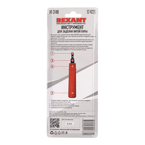 Инструмент электротехнический Rexant (12-4221) HT-314B для заделки витой пары стальной