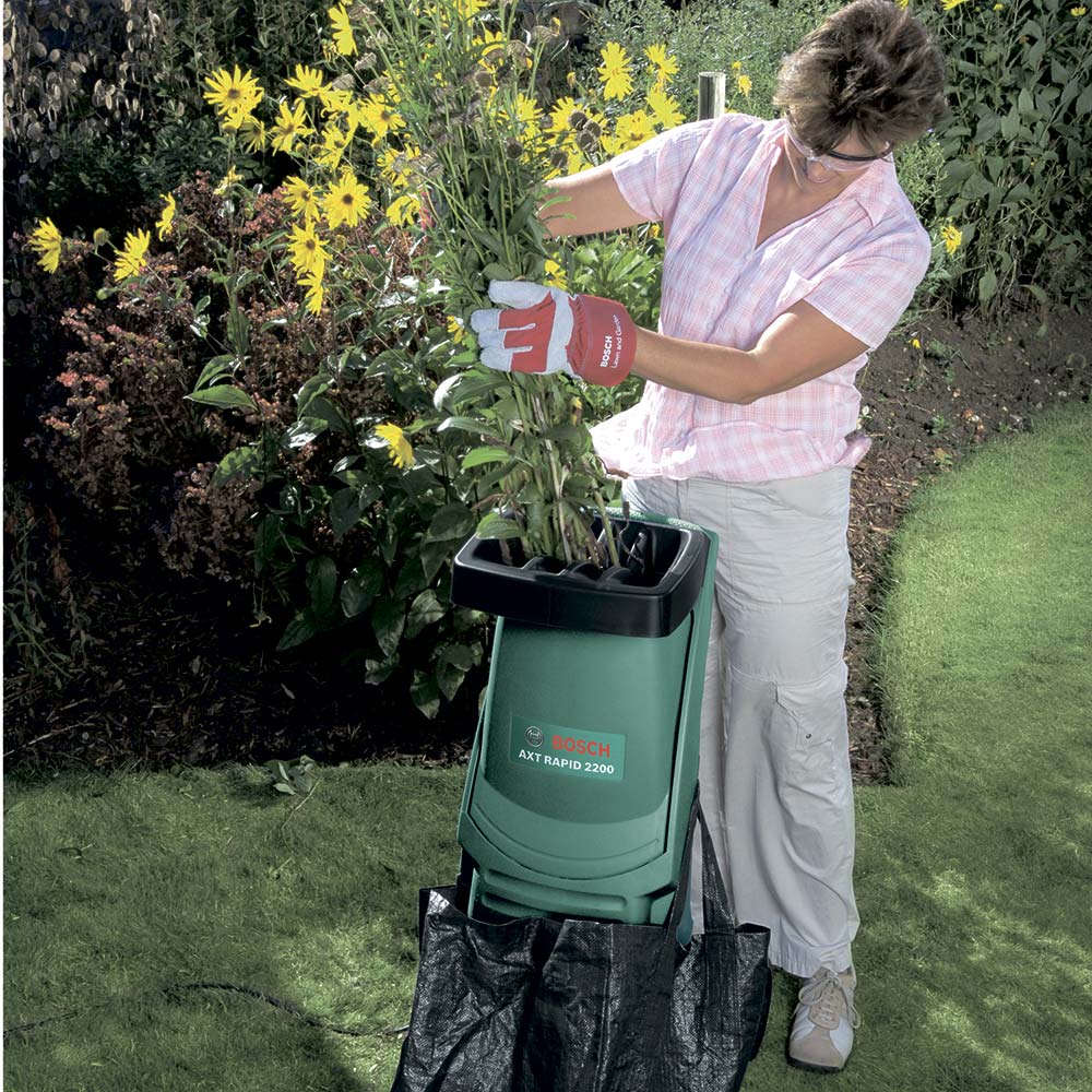 AXT Rapid 2200 – быстрый и мощный садовый измельчитель. Он оснащен чрезвычайно прочными прецизионными ножами швейцарского качества с лазерной заточкой, которые можно переворачивать для увеличения срока службы. Инструмент способен легко измельчать мягкие зеленые отходы и даже ветки толщиной до 40 мм.rnВысокая производительность и качество резания.rnВысокоскоростной двигатель Bosch Powerdrive с – максимальный крутящий момент в своем классе.rnБункер с ускоренной подачей и практичный толкатель с производительностью 90 кг/час.