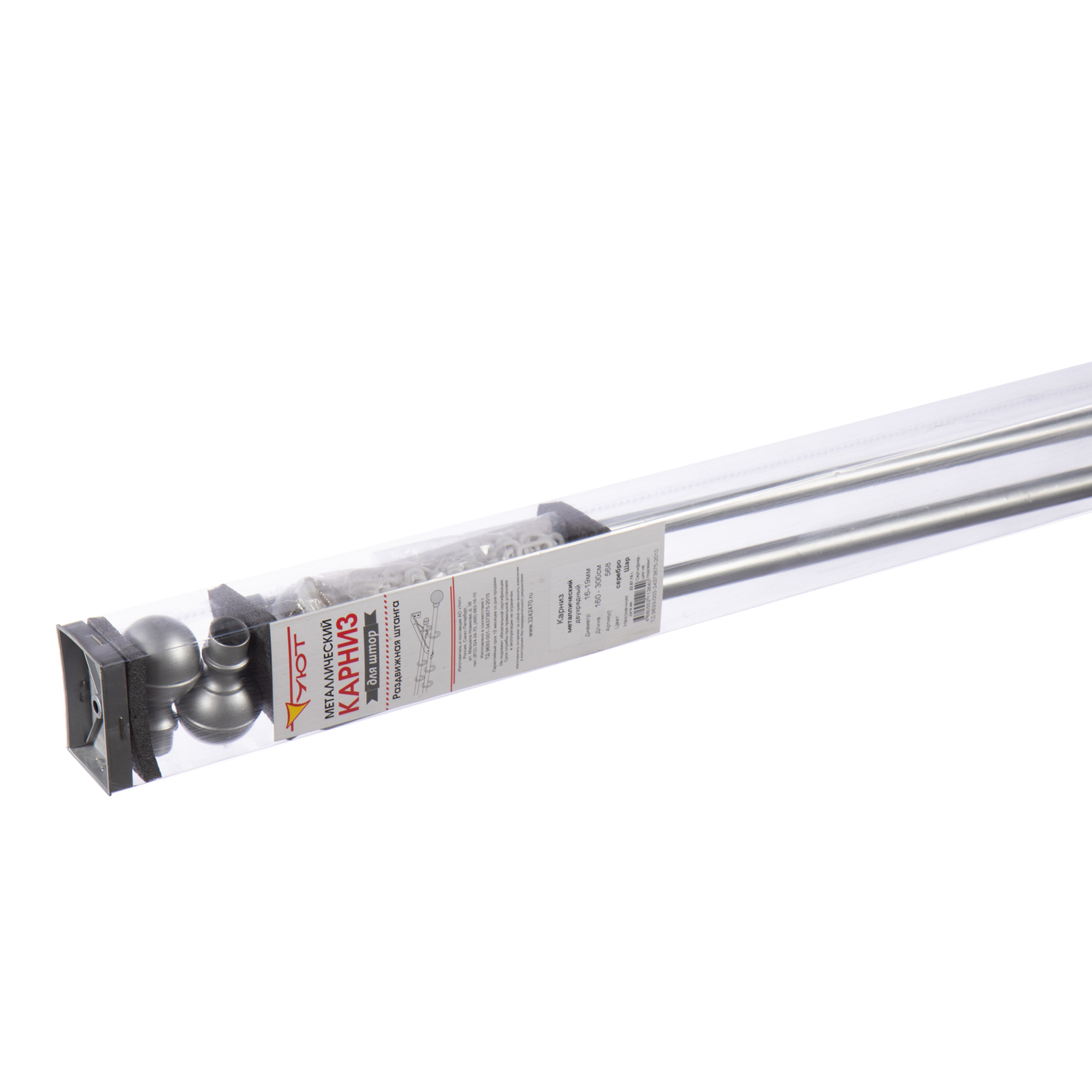 Карниз настенный металлический двухрядный раздвижной 160-300 см шар серебро