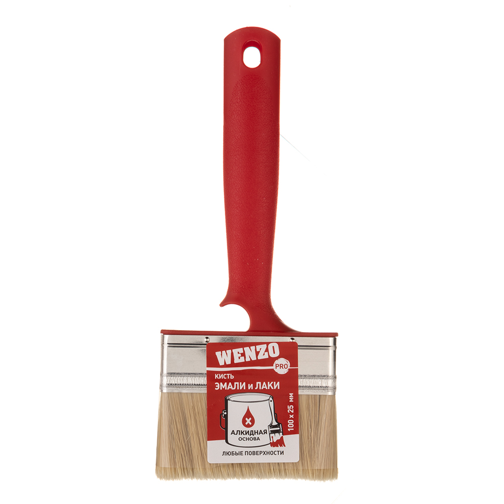 Кисть плоская натуральная щетина Wenzo Pro 100х25 мм для эмалей и лаков на алкидной основе