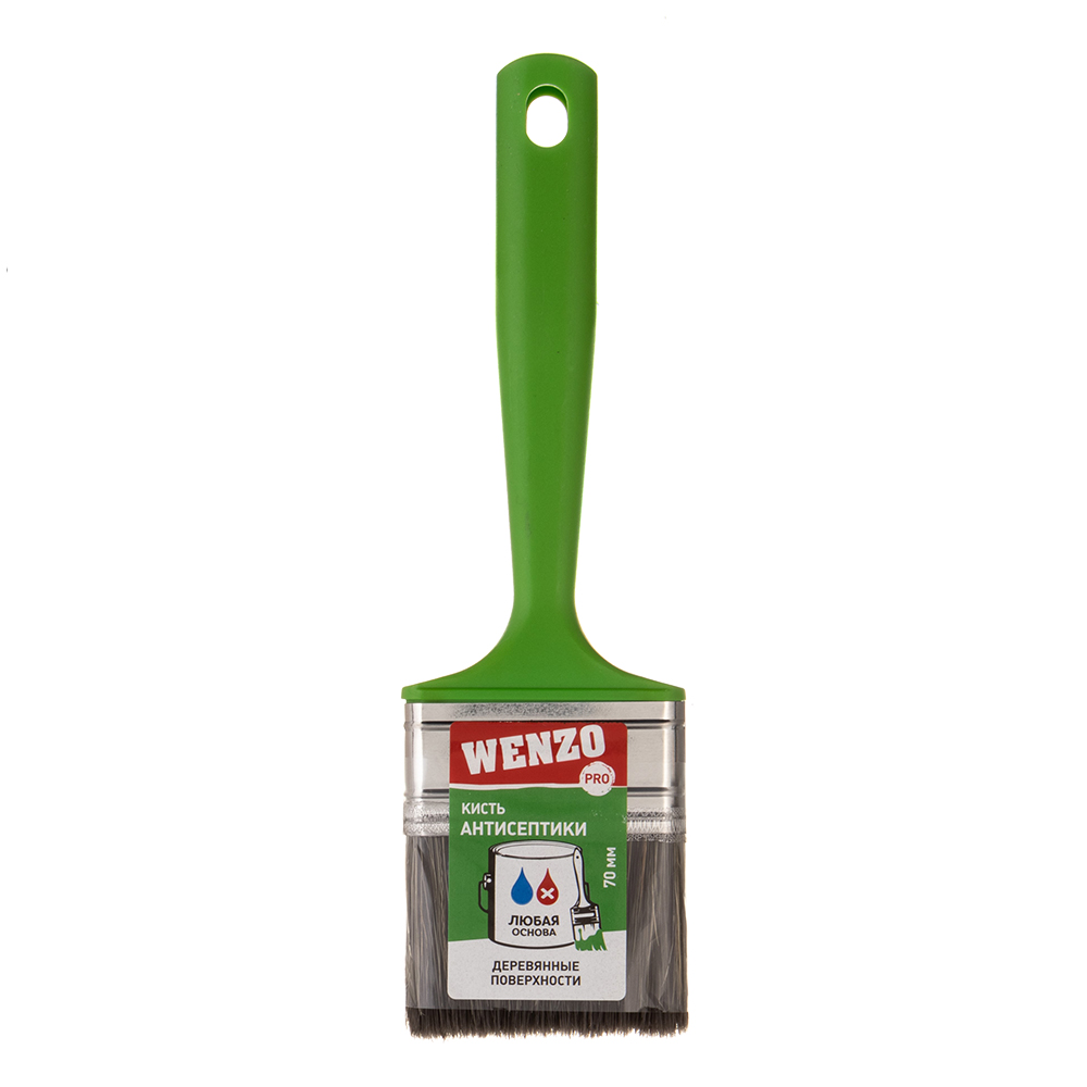 Изготовлена из смеси натуральной щетины и синтетического волокна. Специально заточенные волокна позволяют ЛКМ глубоко проникать в структуру дерева. rnПредназначена для нанесения пропиток для дерева, антисептиков, грунтовок на любой основе.