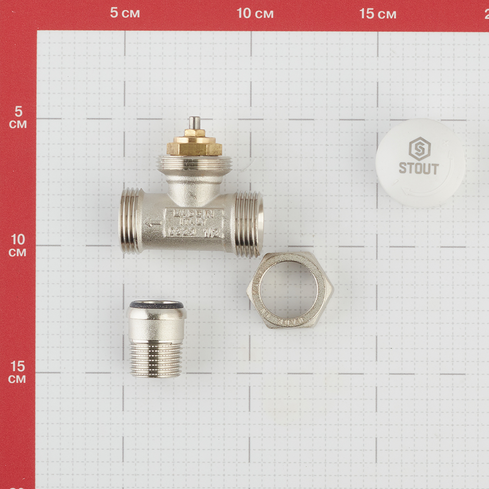 Клапан (вентиль) термостатический прямой Stout (SVT-0001-100015) 1/2 ВР(г) х 3/4 НР(ш) для радиатора под евроконус никелерованный
