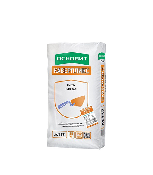 Зимняя клеевая смесь ОСНОВИТ КАВЕРПЛИКС АС117 F предназначена для создания клеевого слоя СФТК ОСНОВИТ при низких температурах окружающего воздуха от -10 до +10°C. rnРекомендуется для утепления фасадов как новых, так и старых зданий. Применяется при монтаже плит утеплителя из фасадного пенополистирола, экструдированного пенополистирола, минераль-ной ваты. rnВысоту зданий и сооружений при применении систем теплоизоляции определяют в соответствии с действующими нормативными документами на конкретные здания.rnДля внутренних и наружных работ.