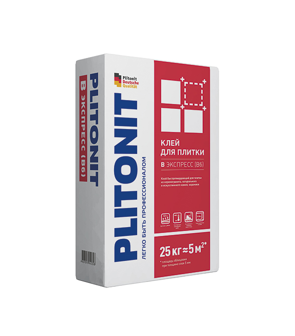 Быстротвердеющий клей на цементной основе. Предназначен для приклеивания всех типов облицовочной, керамогранитной и клинкерной плитки, плитки из камня на поверхности стен и полов из бетона, железобетона, ячеистого бетона, кирпича, гипсокартона, цементных, известково-цементных и гипсовых штукатурок. Может использоваться для облицовки полов с подогревом и бассейнов объемом не более 180 м³. Обладает высокой пластичностью, водо – и морозостойкостью.rnДля внутренних и наружных работ.