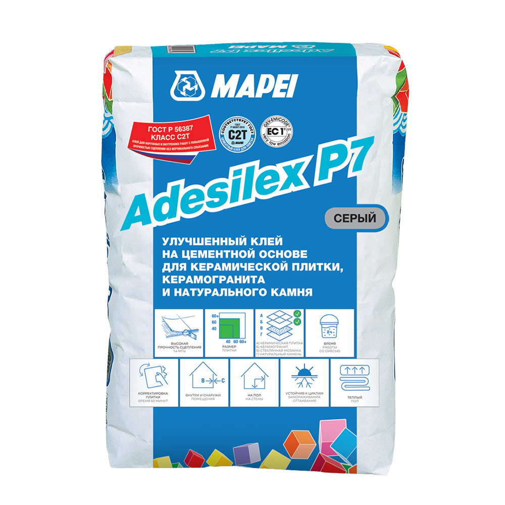 Клей для плитки, керамогранита и камня Mapei Adesilex P7 серый (класс С2Т) 25 кг