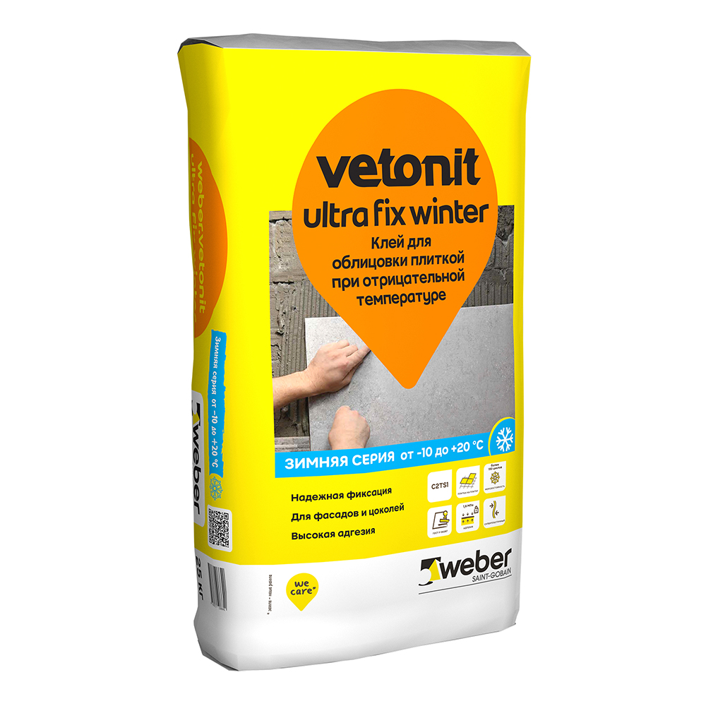 Морозостойкий и водостойкий клей на цементной основе. Может применяться при температурах до – 10°С без использования тепляков или тепловых пушек.rnПредназначен для облицовки керамической плиткой и мозаикой, керамогранитом, натуральным и искусственным камнем поверхностей из бетона (старше 6 месяцев), легкого бетона, кирпича, штукатурок и стяжек на цементной основе, ГКЛ, ГВЛ, ЦСП, а также полов с подогревом. Можно применять для крепления крупноформатной облицовки в местах высокой проходимости. Рекомендован для облицовки фонтанов. rnДля наружных и внутренних работ.rnКласс клея согласно ГОСТ Р 56387-2018 - C2 T S1