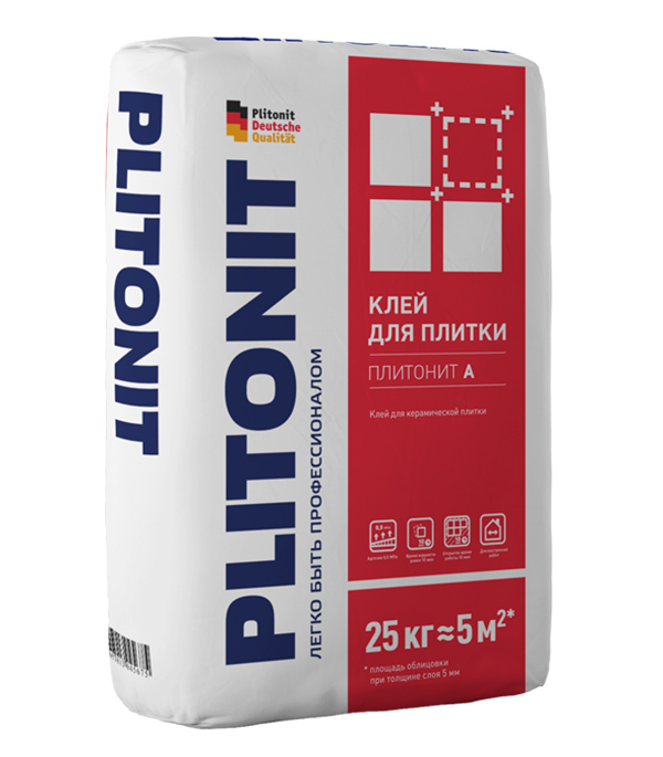 Готовую растворную смесь равномерно нанести на основание с помощью гладкого шпателя и придать гребенчатую структуру зубчатым (размер зубцов шпателя зависит от размера и типа плитки). Растворную смесь следует нанести на такую площадь, которую можно облицевать плиткой в течение 10 минут (открытое время работы). Плитку уложить на клеевую растворную смесь и небольшими поворотными движениями вдавить в нее. Положение плитки может быть скорректировано в течение последующих 10 минут. Сквозняки, высокая температура, а также сильная впитываемость поверхности снижают открытое время работы и время корректировки. В случае образования на поверхности нанесенного клея подсохшей корки, растворную смесь необходимо снять и заменить новой. Плитка укладывается с открытыми швами с выравниванием соответствующими приспособлениями (например, крестиками «ПЛИТОНИТ»). При облицовке плиткой с высотой рельефа тыльной стороны более 2 мм или размером 30х30 см, во избежание пустот под плиткой и для увеличения прочности сцепления, необходимо наносить клей комбинированным способом (как на основание, так и на тыльную сторону плитки). На основание клей наносится, как описано выше. На тыльную сторону плитки, клей сначала наносится зубчатым шпателем, а потом гладким шпателем равномерно разравнивается по всей площади плитки. Расход материала при комбинированном способе увеличивается на 1,3 кг/м² при толщине слоя 1 мм.