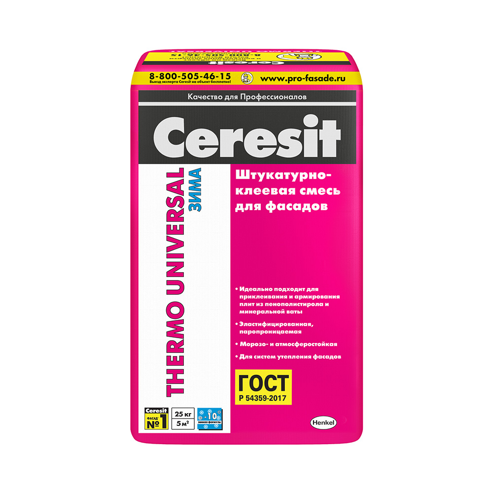 Клей для теплоизоляции Ceresit Термо Юниверсал зимний 25 кг