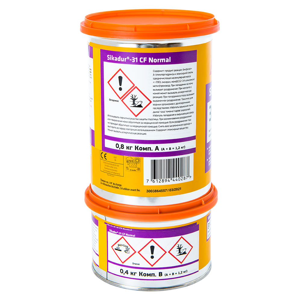 Sikadur 31 CF Normal – это двухкомпонентный, не содержащий растворителей, конструкционный клей и ремонтный состав на основе эпоксидной смолы. Используется для склеивания бетонных элементов, твёрдого натурального камня, керамической плитки, кирпича, каменной кладки, стали, чугуна, алюминия, дерева, полиэстера, эпоксидных составов, стекла.
