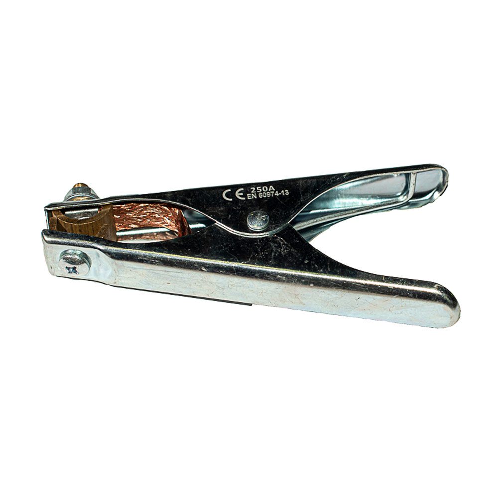 Клемма заземления обеспечивает хороший контакт с рабочей деталью при помощи медного соединения. Это дает чистый переход тока с рабочей поверхности на сварочный кабель. Клемма также имеет омедненное соединение между верхней и нижней контактной точкой, что обеспечивает постоянное течение тока, даже если одна из точек присоединена не полностью 250АrnКоличество – 1 шт.