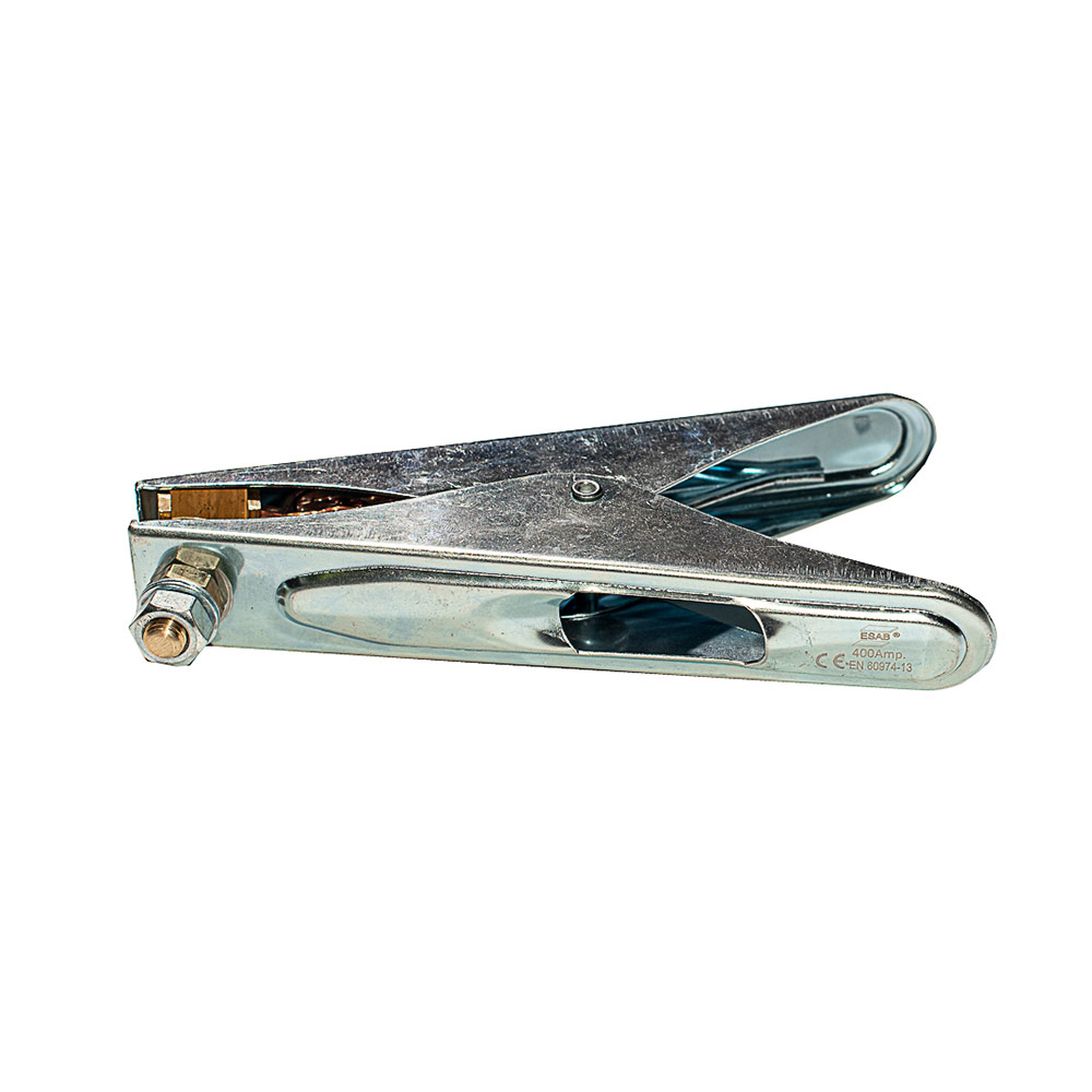Клемма заземления обеспечивет хороший контакт с рабочей деталью при помощи медного соединения. Это дает чистый переход тока с рабочей поверхности на сварочный кабель. Клемма также имеет омедненное соединение между верхней и нижней контактной точкой, что обеспечивает постоянное течение тока, даже если одна из точек присоединена не полностью 400АrnКоличество – 1 шт.