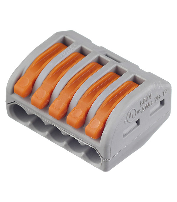 Клемма на 5 проводов Wago 222-415 0,08-2,5 кв. мм с рычажком (5 шт.)