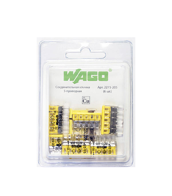 Клемма на 5 проводов Wago 2273-205 0,5-2,5 кв. мм без пасты (6 шт.)