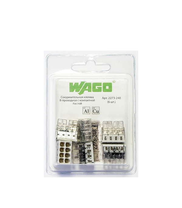 Клемма на 8 проводов Wago 2273-248 0,5-2,5 кв. мм с пастой (6 шт.)