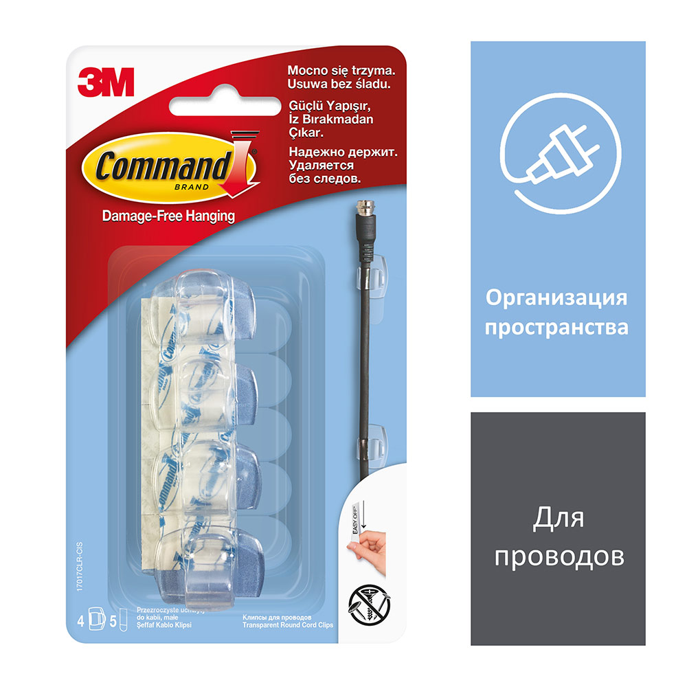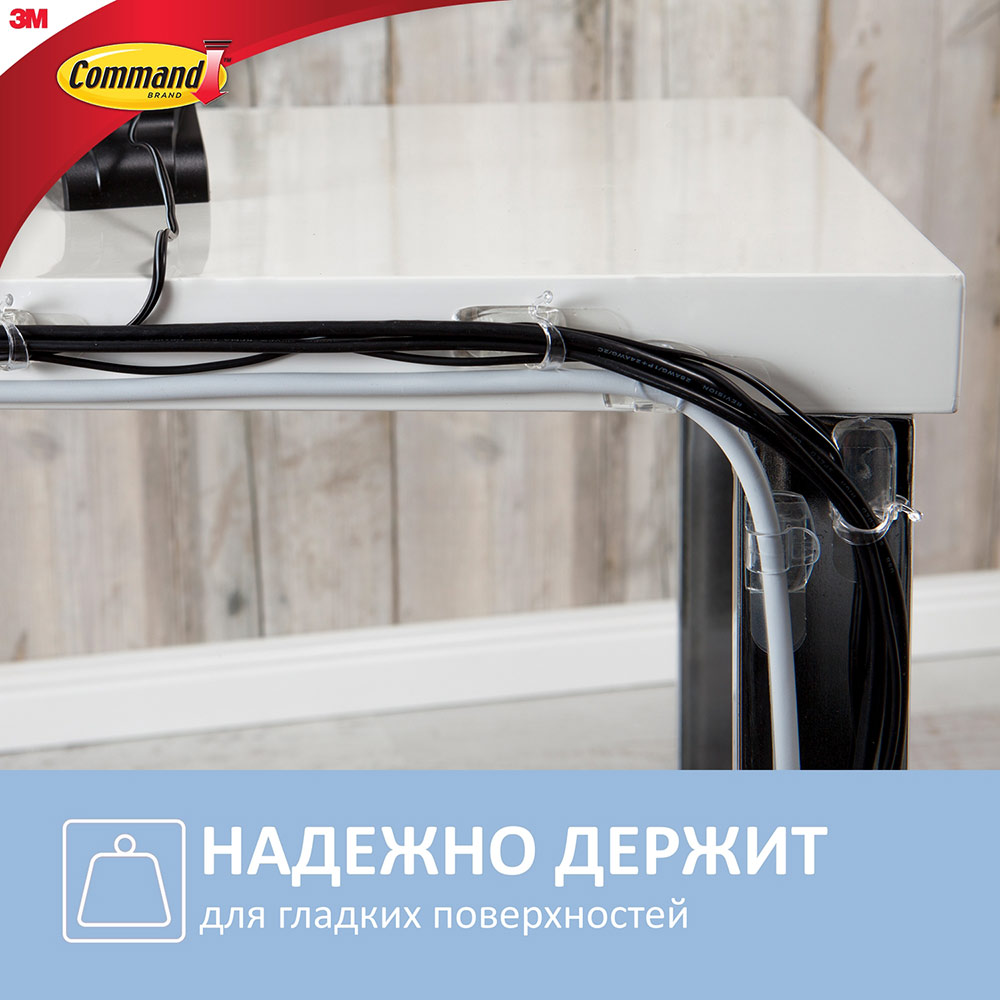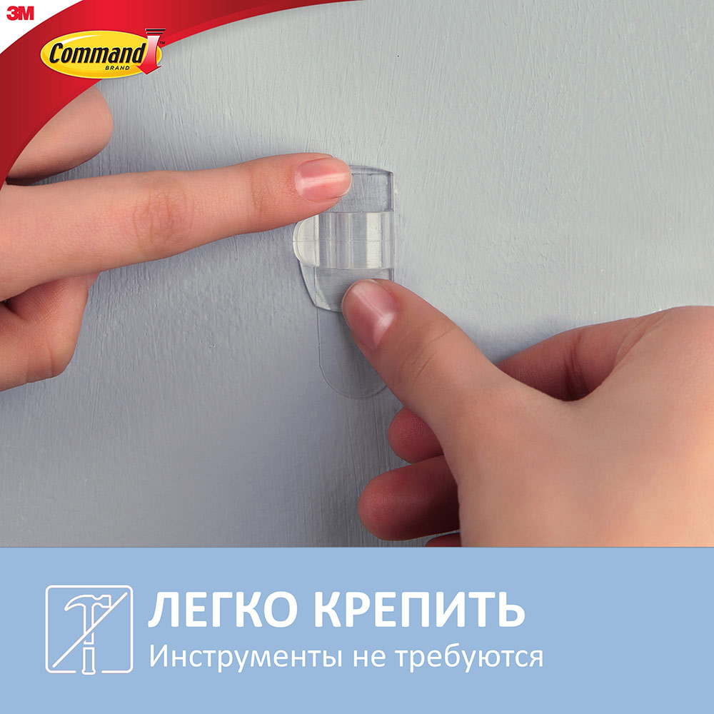 Прозрачные клипсы Command™ – это инновационное решение для удобной организации проводов и крепления гирлянд. Клипсы незаметны на поверхности, надежно держат и легко снимаются благодаря технологии 3M Stretch-Release.rnПредотвратите спутывание шнуров и беспорядок в вашем доме и офисе с помощью клипс для проводов Command™. Идеально подходят для съемного жилья, если вы не хотели бы повреждать стены. Клипсы могут использоваться повторно со сменными полосками Command™; в каждой упаковке есть запасные, а также полоски доступны отдельно.