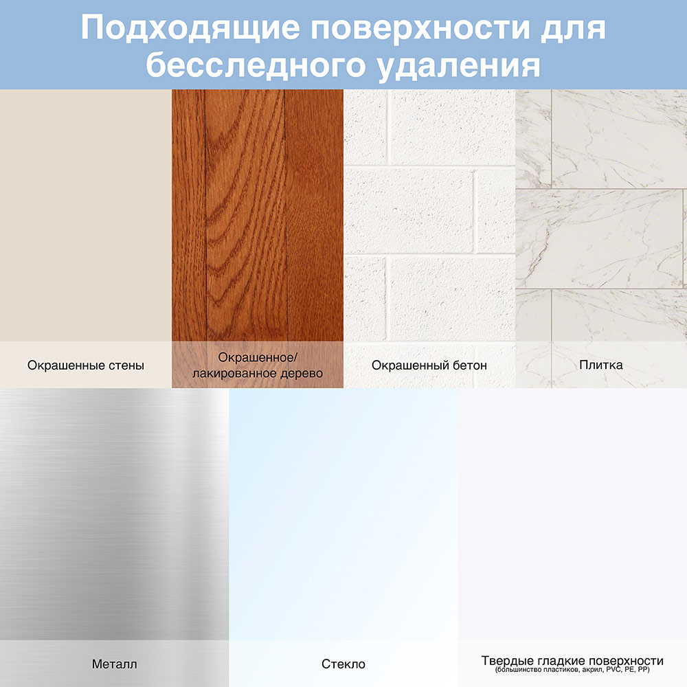 После нанесения на стену подождите 1 час, прежде чем вешать что-либо на клипсы. Идеально подходят для твердых, ровных поверхностей и окрашенных стен. Не подходят для неокрашенных бумажных или виниловых обоев, шероховатых поверхностей.