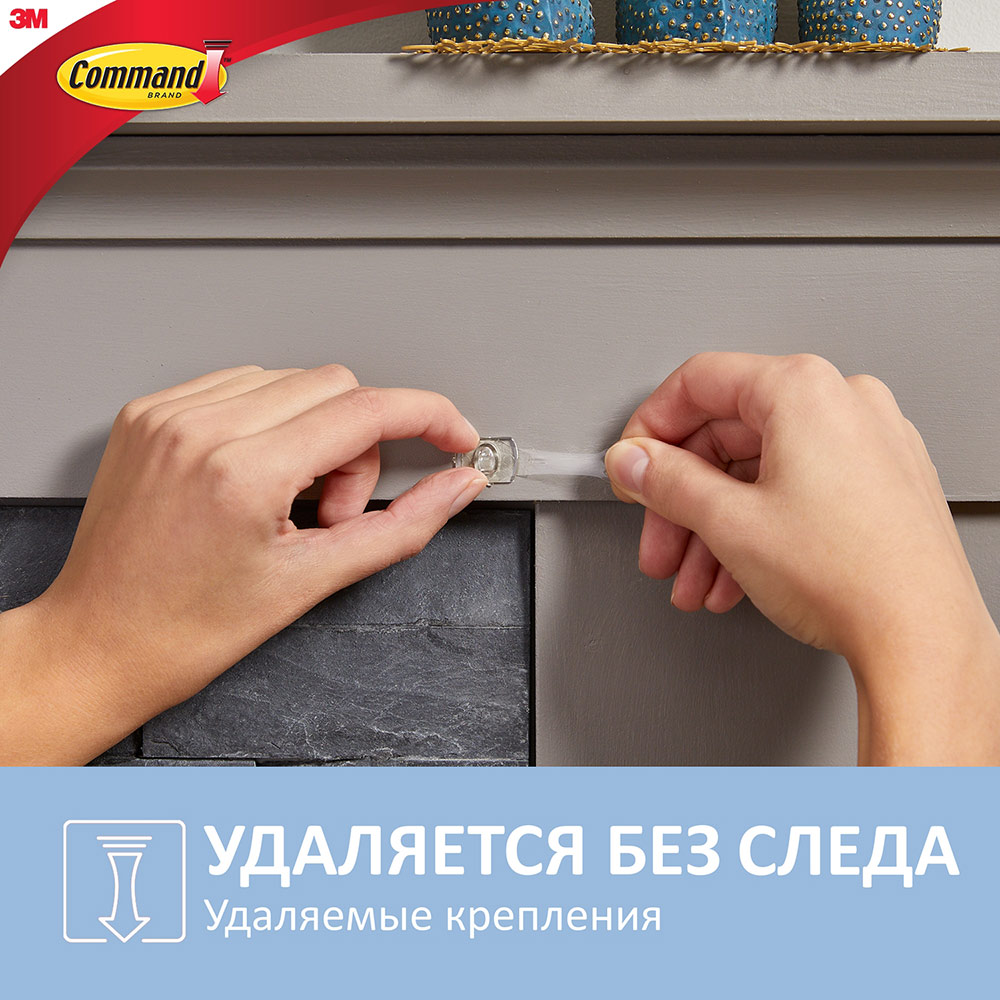 Прозрачные клипсы Command™ – это инновационное решение для удобной организации проводов и крепления гирлянд, сказочных огней и сезонных украшений. Клипсы надежно держат и легко снимаются благодаря технологии 3M Stretch-Release.rnУкрашайте ваш дом к праздником легко и свободно. Клипсы незаметны на поверхности и легко снимаются, когда праздники подходят к концу. Благодаря прозрачным клипсам можно удобно разместить тонкие кабели на рабочем столе или тумбочке так, что они не будут падать. Идеально подходят для съемного жилья, если вы не хотели бы повреждать стены. Подходят для проводов диаметром до 2мм